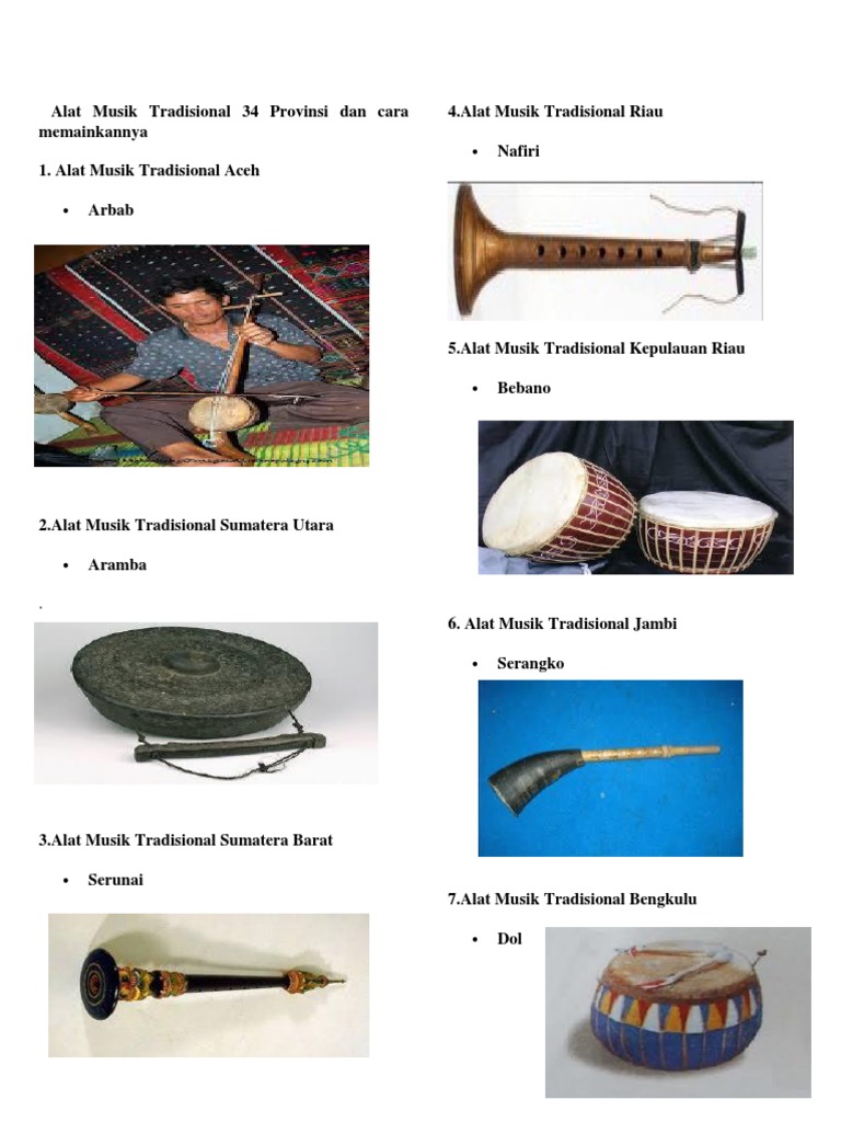 Alat Musik Tradisional 34 Provinsi Dan Cara Memainkannya Pdf