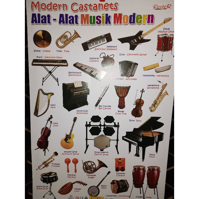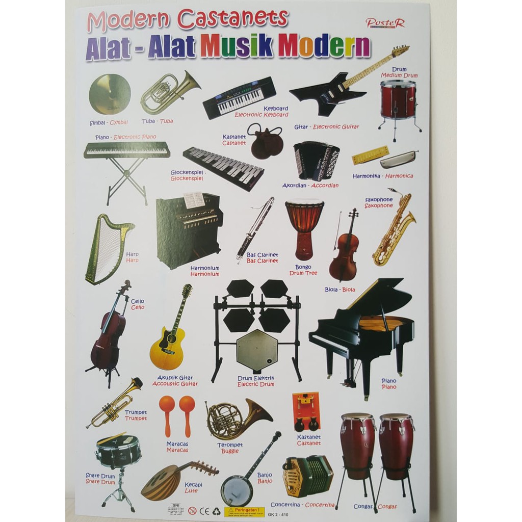 Poster Edukasi Anak Gambar Alat Musik Modern Bilingual Bahasa Inggris Indonesia Shopee Indonesia