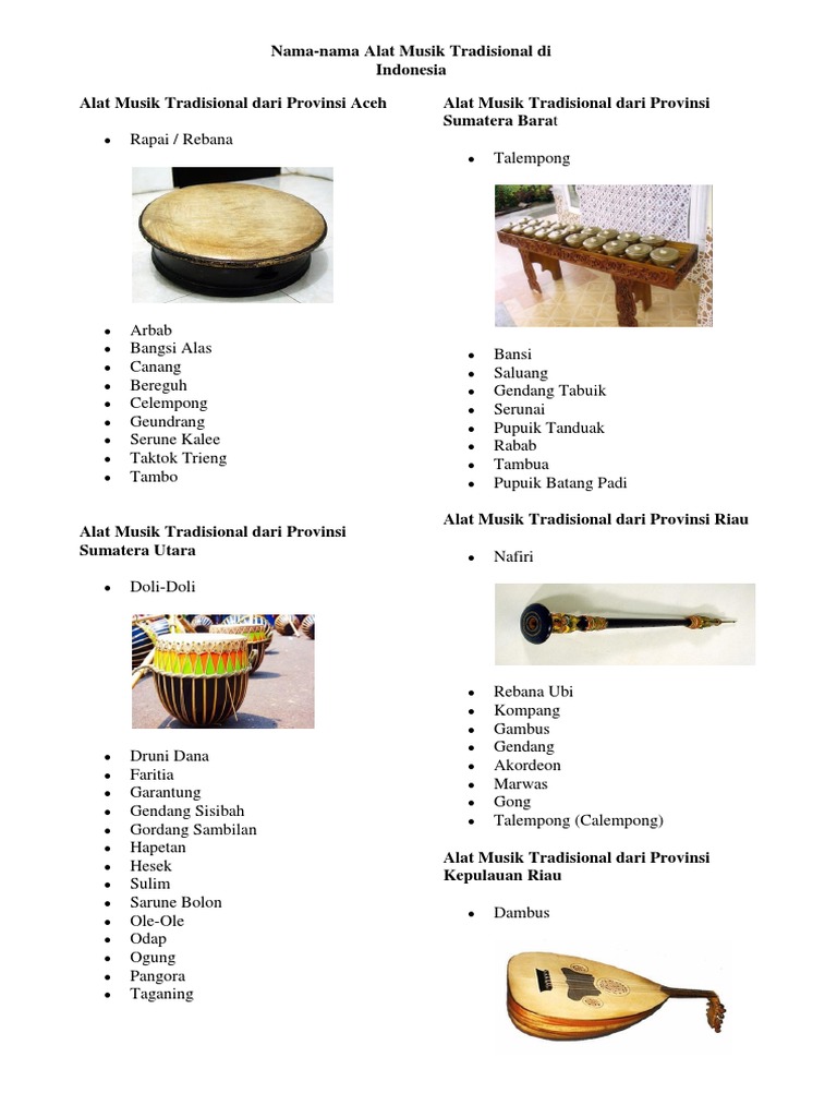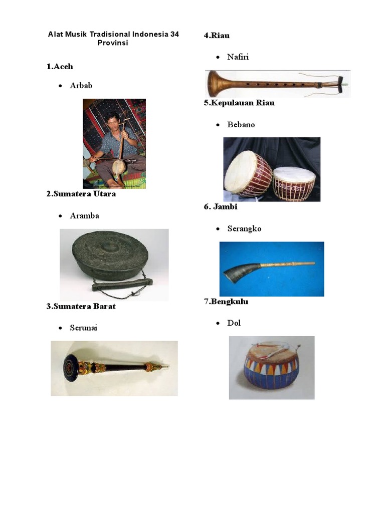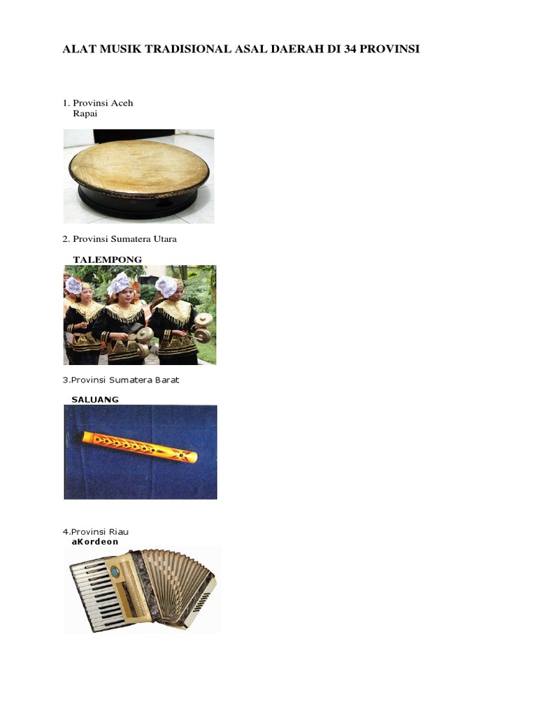 Alat Musik Tradisional 34 Provinsi Beserta Gambarnya Dan Penjelasannya Pdf. 24 Full PDFs related to this paper.