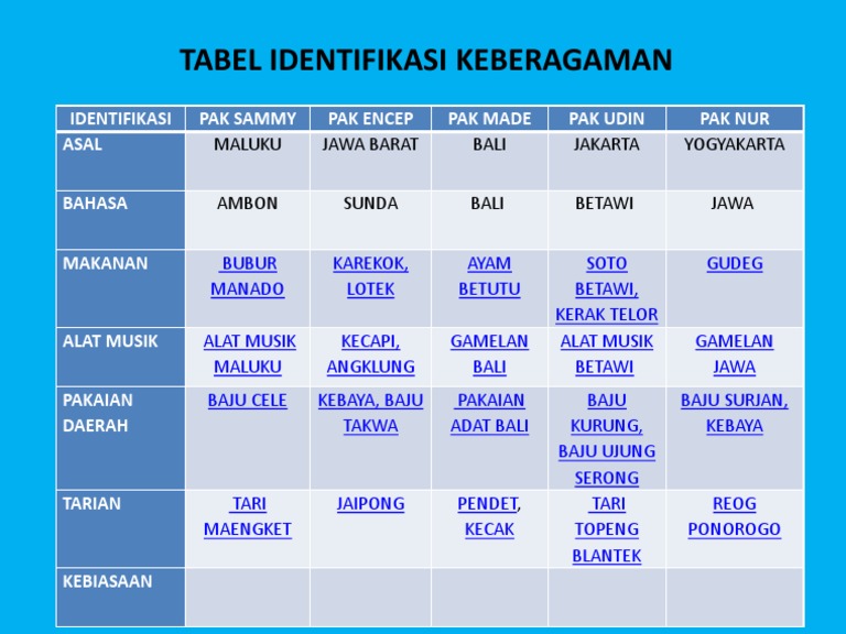 Tema 1 Sub 1 P 3 Tabel Identifikasi Keberagaman Pdf